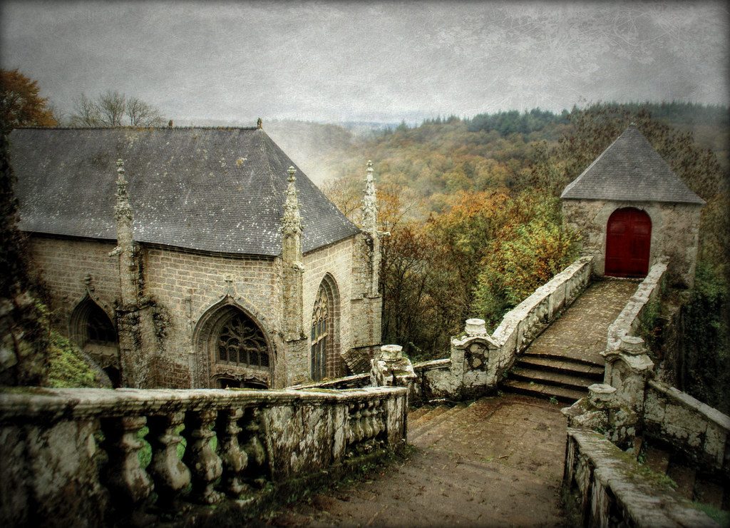 A la fin du XVe siècle, un seigneur breton se fait surprendre par un violent orage sur une falaise dont les roches menacent de l’écraser. Priant Sainte Barbe protectrice du feu et de la foudre, il lui promet de lui ériger une chapelle sur ce lieu si elle le sauve. C’est ainsi que fut construite à flanc de roche la chapelle Saint Barbe, devenue depuis un lieu de pèlerinage. Tout près de la chapelle, une fontaine « magique » prédisait un mariage dans l’année aux jeunes filles qui y jetait une épingle de leur coiffe… Si vous aimez la Bretagne, ses légendes et ses mystères, les vieilles pierres et les lieux à couper le souffle, vous serez inspirée par cette chapelle dont l’emplacement de construction laisse songeur…