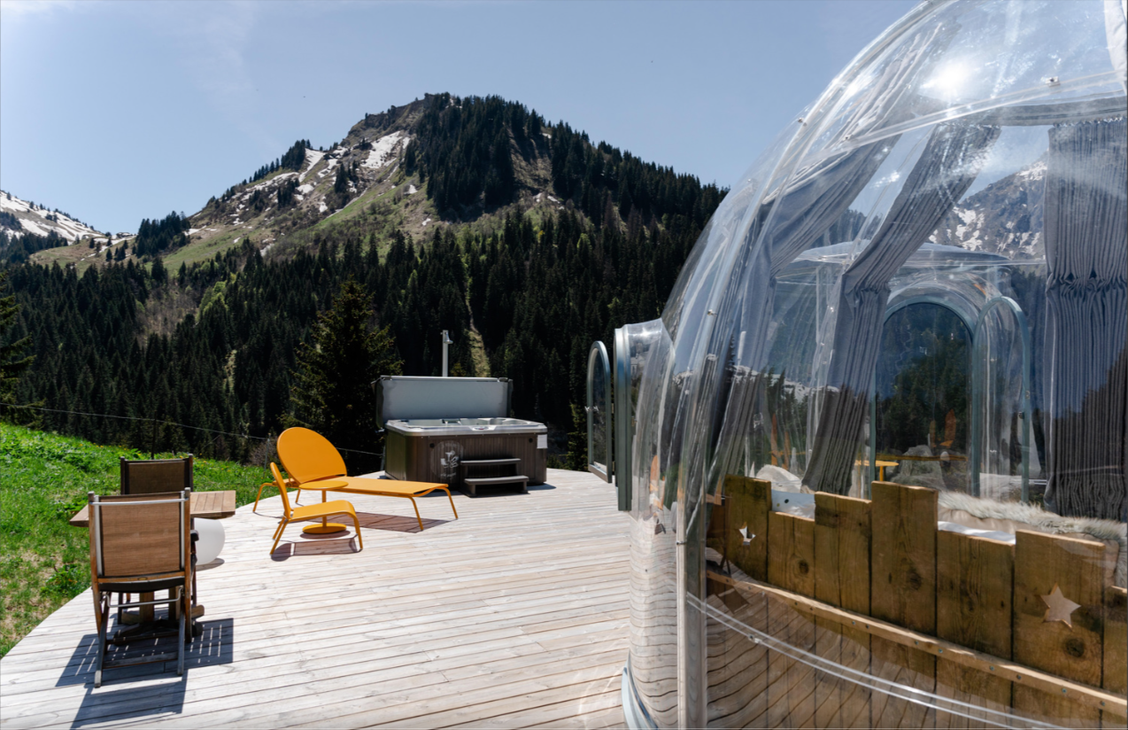 Admirez la voie lactée confortablement installé dans une bulle chic et transparente, voilà le concept très inspiré des hôtels bulles que l’on peut trouver en Savoie et Haute-Savoie ! Plus qu’une simple microaventure chic, c’est une expérience au plus près des éléments naturels sans, pour autant, sacrifier le confort et l’élégance. En définitive, ces petits cocons transparents originaux et écoresponsables se nichent dans des lieux exceptionnels. Face au Mont-Blanc, en lisière de forêt, suspendues à plusieurs mètres du sol, dans un éco-bivouac d’igloos,etc. Chaque bulle promet une vue panoramique incroyable du ciel et des paysages, de jour comme de nuit.